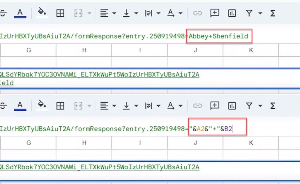 Ainda no URL substituir os campos do texto do formulário pela respetivas referências com o texto dos campos respetivos, como é apresentado na figura.