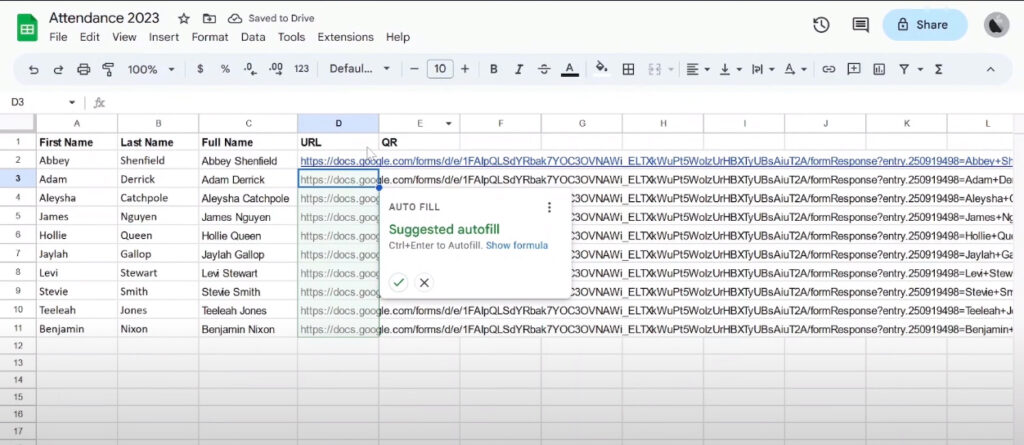 Gerar os QR Codes para cada entrada/linha, através da API utilizando a função =image(…)